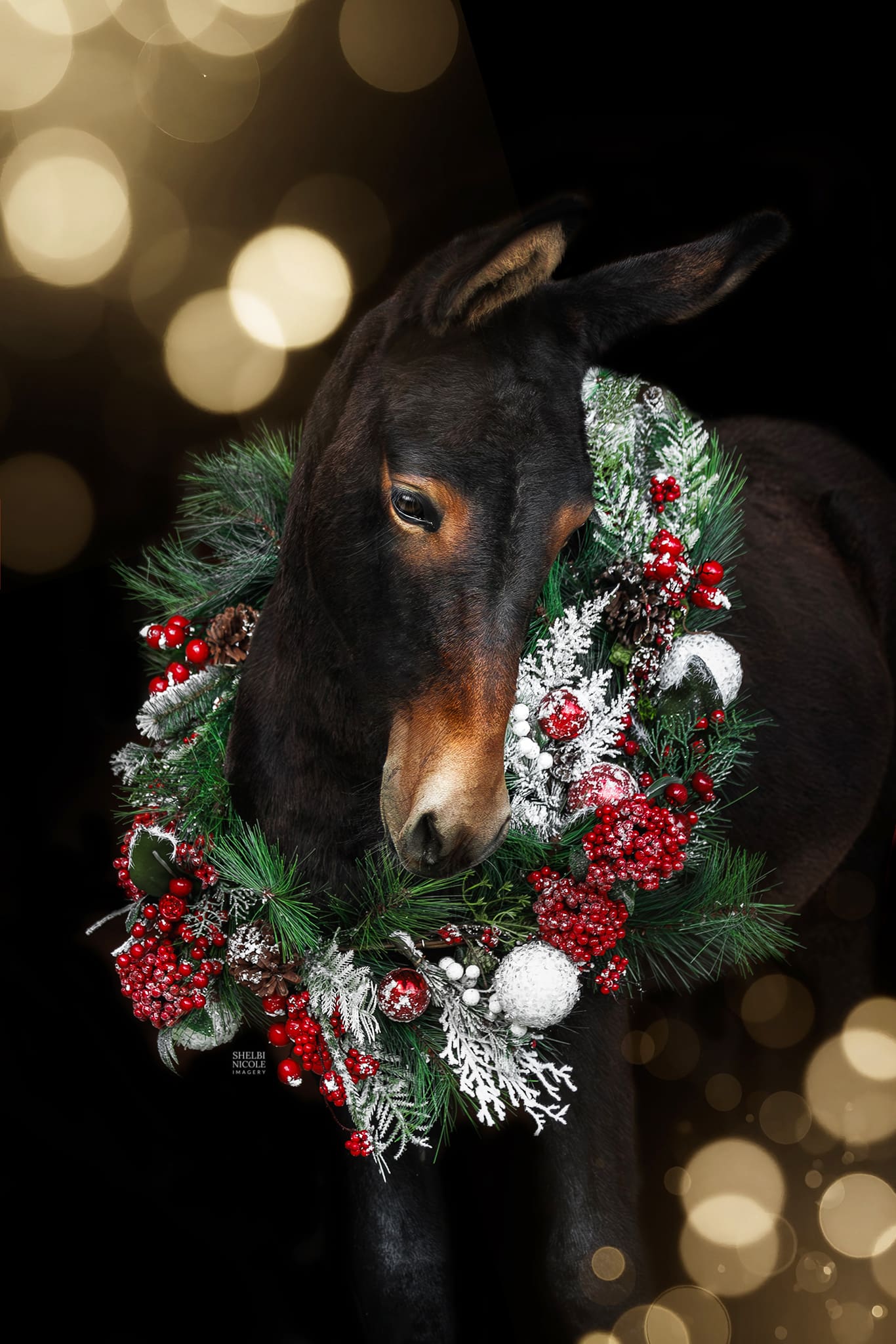 Christmas in the Barn: Equine Painterly & Black Background Portraits in North Idaho